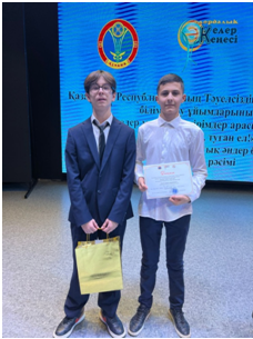 7 декабря 2022 года во Дворце школьников им. М. Утемисова состоялся IV городской конкурс патриотической песни среди отцов и юношей организаций образования г.Астаны "Рахмет саған, туған ел!" в рамках празднования Независимости РК. Цель конкурса: объединить отцов разных социальных категорий и профессиональной направленности, занимающие единую активную жизненную позицию в повышение роли отца в обществе. 30 ноября 2022 года прошел отборочный этап (просмотр видеороликов) участников. Наша школа вышла в финал. Вокальная группа, под руководством Кабиевой Ж.К. была награждена грамотой в номинации «Туған жердің сұңқарлары». Поздравляем Агаев Вугара 9а, Бурбукина Ярослава 8з, Хабдуәли Алдияра 10д, и Тагирова Р.С. с победой в данной номинации.