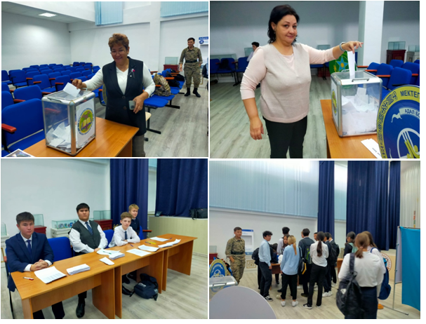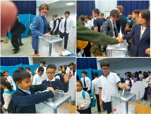 18 октября с 8.00ч утра до 13.00ч проходили выборы Президента Школьного Парламента. На выборах принимали участие учащиеся 8-11 классов, преподаватели школы, были желающие отдать свой голос из 6-7 классов. Кандидатами на пост Президента изъявили желание 8 человек: Нурмухамед Гани 11 «г» класс, Киреев Тимур 11 «д» класс, Султан Аяна 9 «а» класс, Бакулин Иван 10 «кад», Рожкова Софья 11 «д» класс, Алакаева Дарига 9 «и» класс, Абдрахманова Эльдана 10 «а» класс. Надо отметить, что шла ожесточенная борьба во время предвыборной кампании кандидатов. Ребята представили свои программы, собрали портфолио, в которые вошли и рекомендации от учителей. Все было очень серьезно. В день голосования наблюдатели от кандидатов строго смотрели за порядком, чтоб не было нарушений прав каждого из кандидатов. Комиссия вела строгий учет избирателей, на каждом бюллетне ставили свои росписи. Голоса распределились следующим образом: